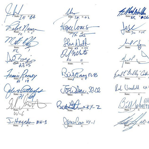 Look at those signatures laid out together like that like a horrifying incantation. Like a graffiti covered wall in a neighborhood bombed into submission tagged by the people who ordered the strikes.