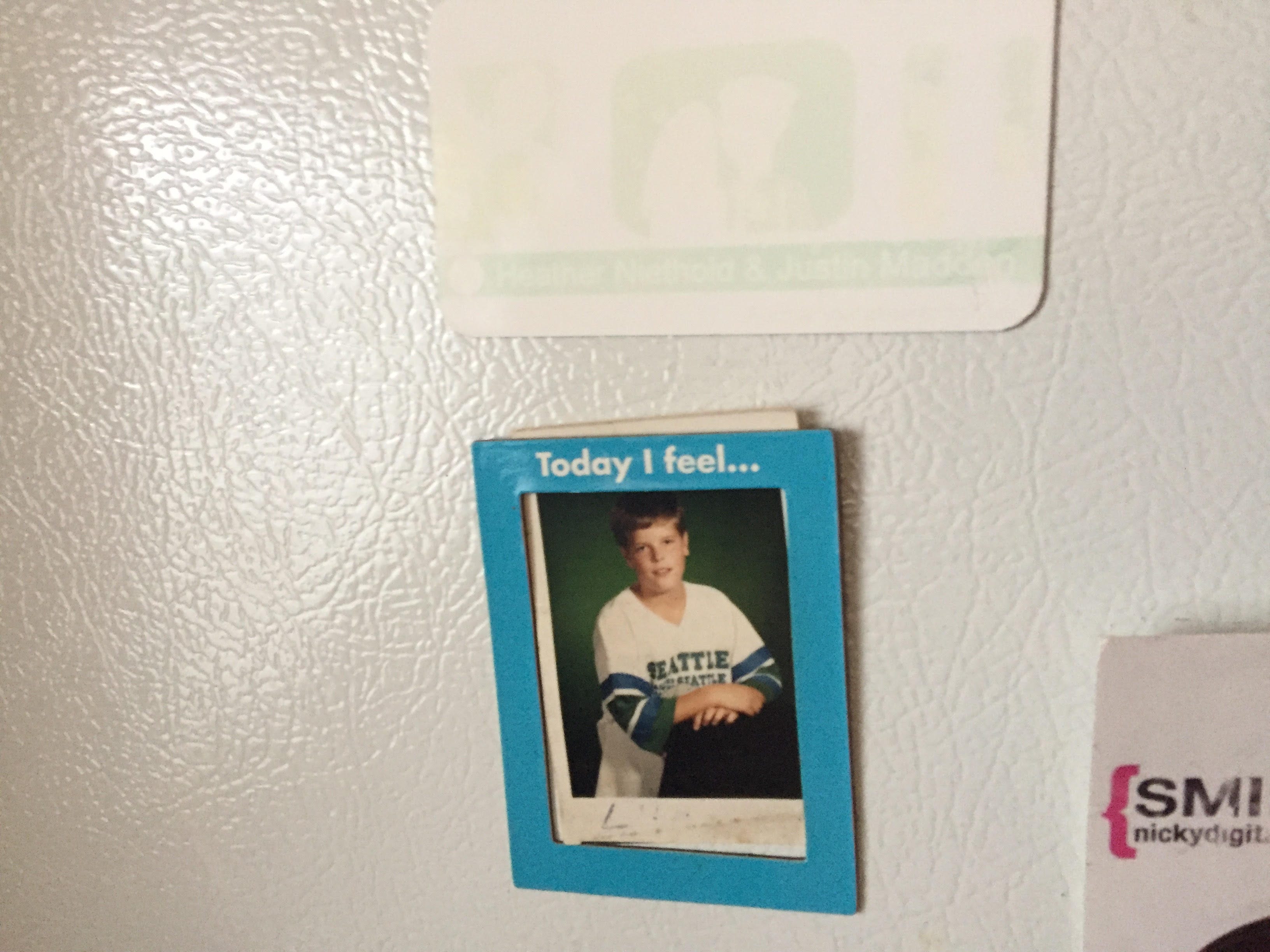 We have a bunch of old magnets on our fridge and a lot of them are cute little things my grandmother who is dead and who loved us very much made for my wife such as those hats and and magnets that say things like I am fairly certain that given a cape and a nice tiara I could save the world! and The secret to life is girlfriends and a good martini. We also have a bunch of old wedding invite magnets which I guess was a trend there for a while and a lot of them are faded like that one you can see in the photo there like the idea of the marriage itself washed away over time which it literally did because that couple got divorced pretty quickly. Half of the magnets on there are for couples who have gotten divorced by now actually but we keep them up there anyway and I’m not sure why. I was thinking about that this morning and I thought it was the saddest thing I could think of but I don’t think it’s all that sad any more relatively speaking at this particular moment. I don’t really know all that much about what happened in any of those marriages but I know at some point someone got fed up and decided they didn’t have to live like that anymore. They could just leave and not look back.