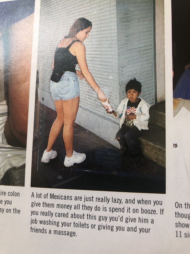 I was sitting in a mobile home and it was 2010 and we were riding out to Coney Island for a fashion shoot for Black Book and I remember wanting Gavin McInnes to like me very much. I was interviewing him about his Street Boners book that had just come out and we all thought that was just about the funniest shit in the world at the time even though we should have known better. I wasn’t even particularly young but I don’t know what to tell you about that. There was still some plausible deniability left in the whole scam if you wanted a reason to ignore it I guess for example if you were a white male hipster who never had anything bad happen to you in your life. When you are convinced of your own self-evident goodness saying transgressive shit becomes the joke itself because you’re obviously a good person right and you don’t really believe that sort of thing right so it goes all the way back around and is funny now. I remember thinking everyone involved in the shoot was the coolest person alive and there were like a dozen models both men and women there and I thought about how exciting it must be to be a hipster model in New York City skateboarding to parties and dying from cocaine overdoses and such but in retrospect they were probably getting paid shit like I was getting paid shit and I wonder if any of them ever went on to have a real career in fashion or if it was just something they did when they were young for a little while before moving back to Arizona and dying from cocaine overdoses there.