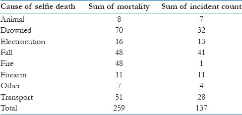 Drowning, transport incidents, such as taking a selfie in front of an approaching train, and falling were the top three ways people died while taking selfies. “Also, most of the selfie-related deaths because of firearms occurred in the United States,” the researchers noted but they probably didn’t need to say that because no shit buddy.